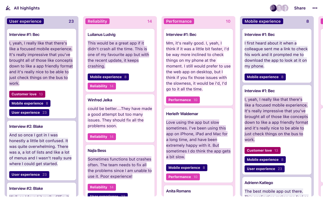 I watched each videos and took notes of the results onto a large thematic analysis board on Miro