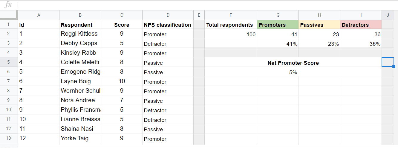 *Representation of a simplified NPS analysis on Excel, not the actual analysis